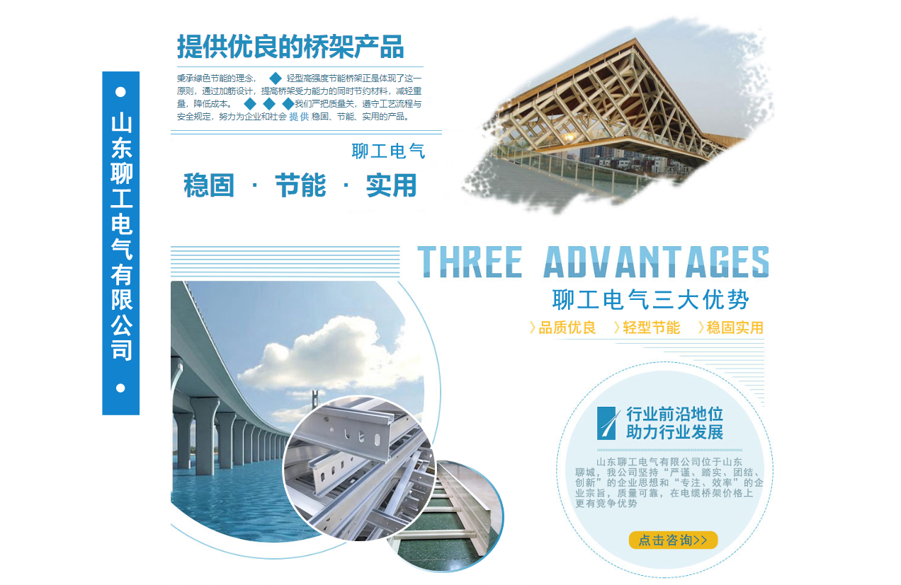 山東聊工電氣有限公司位于山東聊城,是一家銷售各類橋架的公司,公司主營鍍鋅防火噴塑橋架,鍍鋅防火電纜橋架 ,不銹鋼電纜橋架,熱浸鋅電纜橋架,鋁合金電纜橋架,熱鍍鋅電纜橋架,梯式電纜橋架等我公司堅(jiān)持“嚴(yán)謹(jǐn)、踏實(shí)、團(tuán)結(jié)、創(chuàng)新”的企業(yè)思想和“專注、效率”的企業(yè)宗旨,質(zhì)量可靠,在電纜橋架價(jià)格上更有競爭優(yōu)勢。公司追求品質(zhì),配有研發(fā)人員,進(jìn)行產(chǎn)品的改革和創(chuàng)新,服務(wù)先進(jìn)走出了一條富有企業(yè)特色的可持續(xù)化發(fā)展之路! 我公司鄭重向你承諾:保證最好的質(zhì)量,以低的價(jià)格,完善的售后服務(wù),來答謝新老客戶。可提前電話聯(lián)系。...